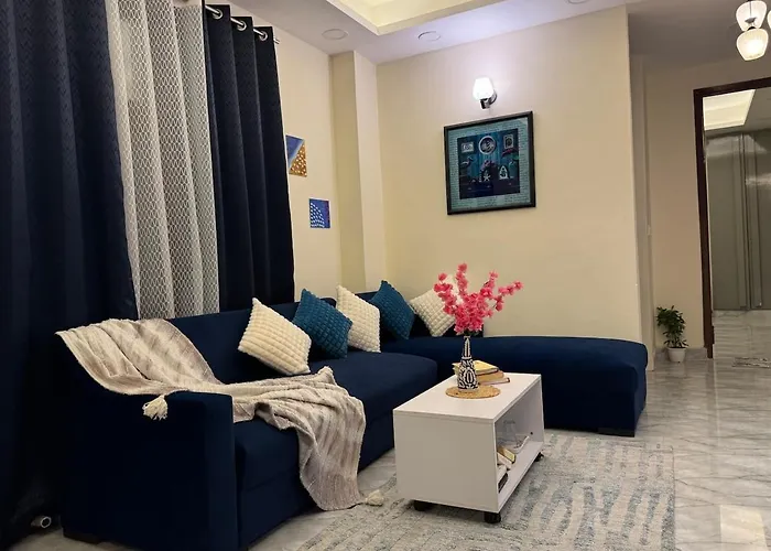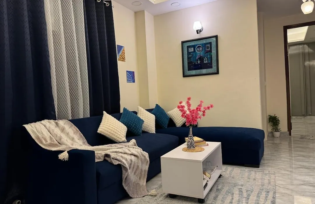 Overlooking the garden, the spacious Greece Vibes-Flat, Serviced Apartment, Private And Cozy Space Space In Delhi And Ncr New Delhi is nearly a 25-minute walk from the Chhatarpur Temple in New Delhi. This apartment offers modern facilities, such as Wi-Fi and essentials like a private parking lot for car travellers.